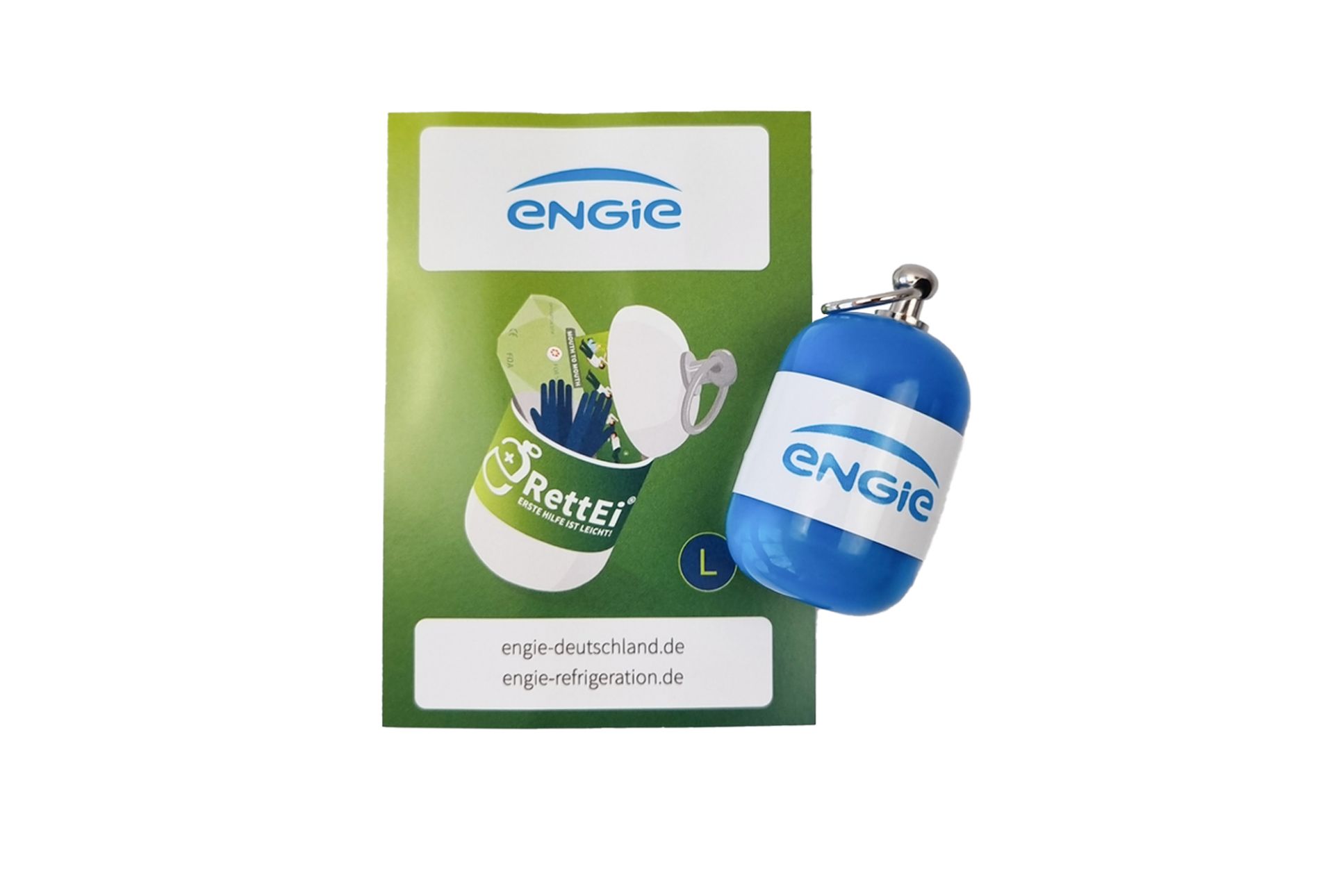 Farbe: blaues Ei Druck: ENGIE Logo in cyan-blau auf weiß